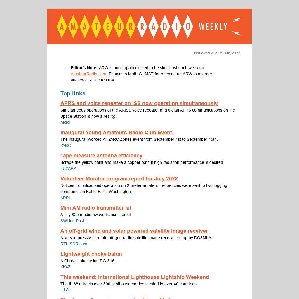 Editor's Note: ARW is once again excited to be simulcast each week on AmateurRadio.com. Thanks to Matt, W1MST for opening up ARW to a larger audience. -Cale K4HCK