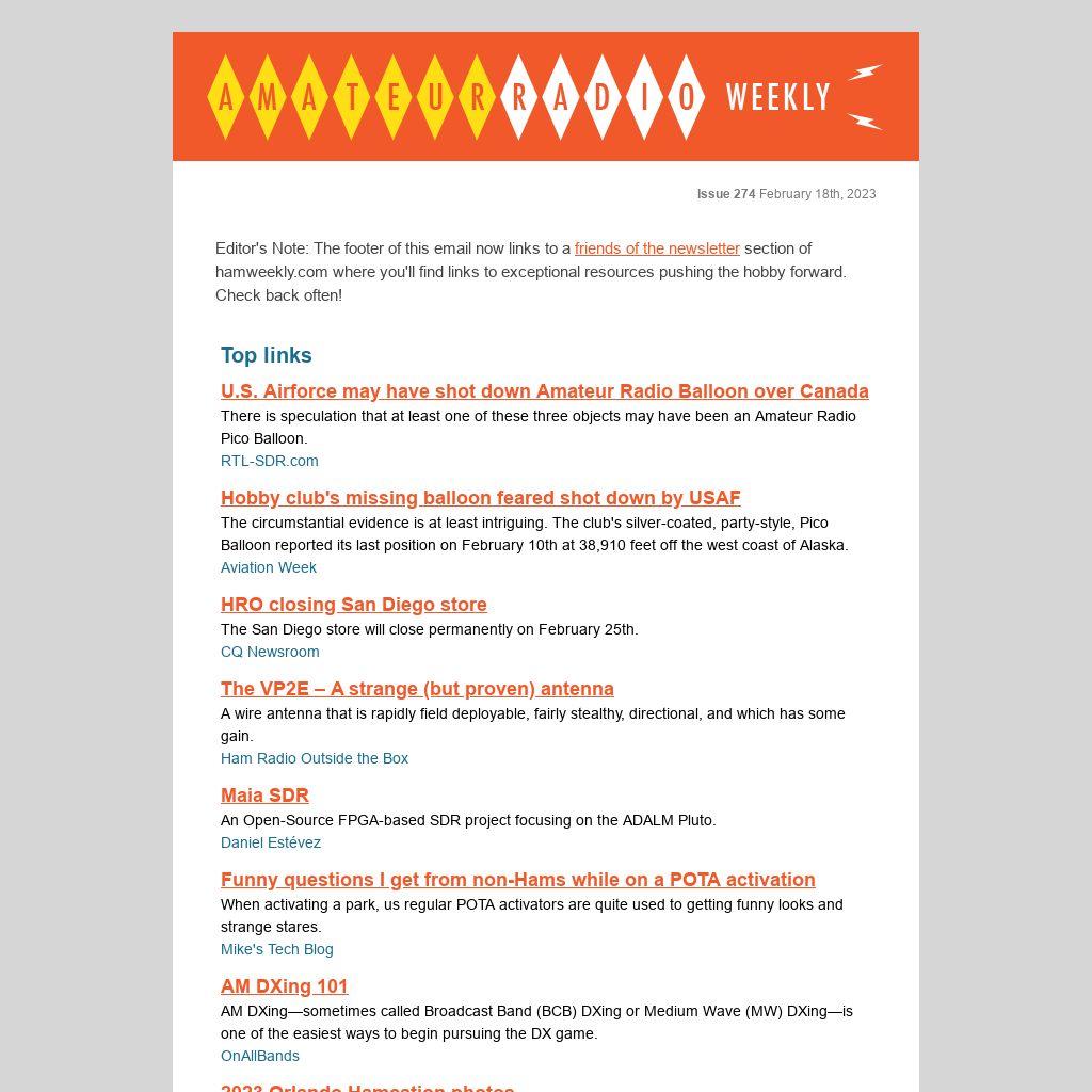 Editor's Note: The footer of this email now links to a friends of the newsletter section of hamweekly.com where you'll find links to exceptional resources pushing the hobby forward. Check back often!