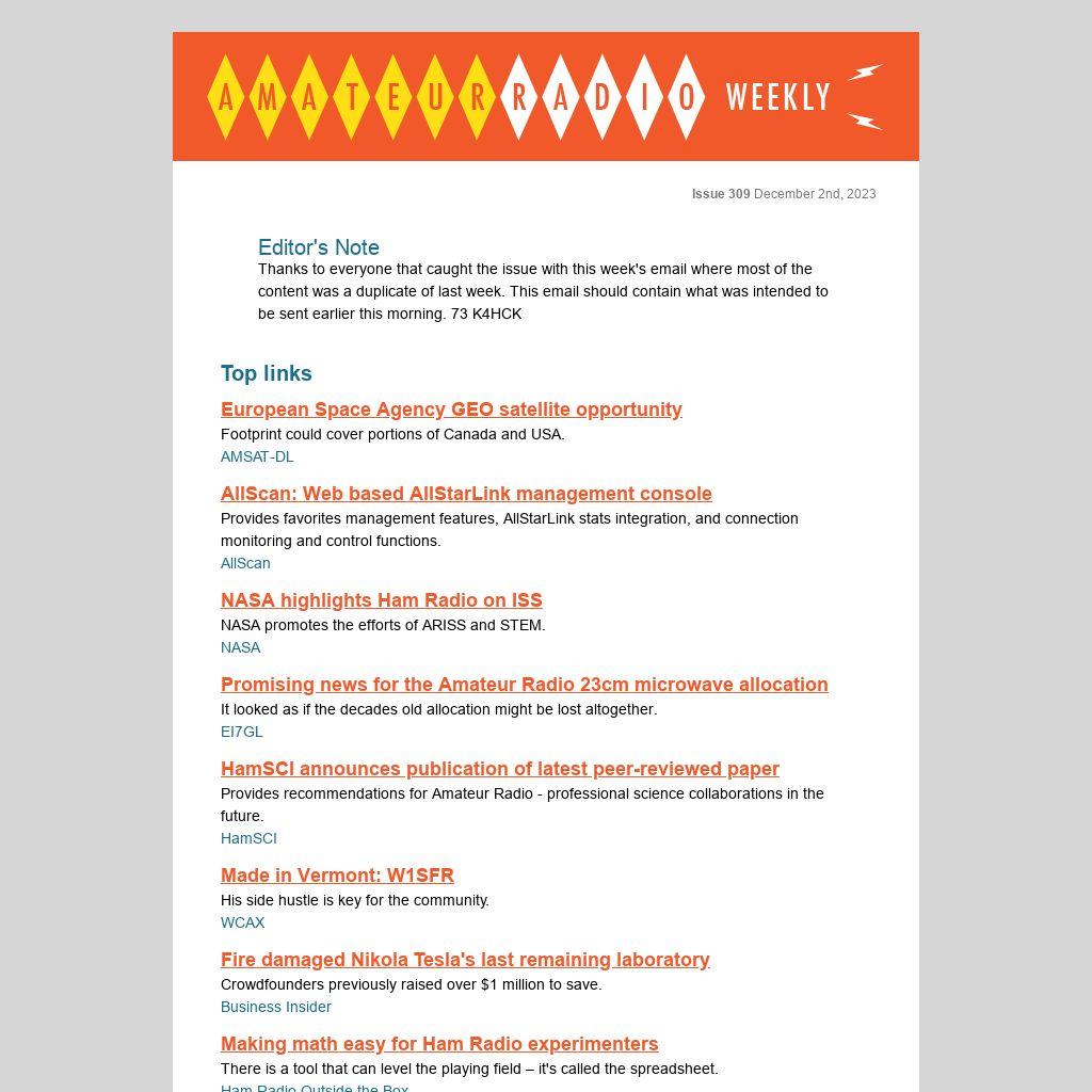 Issue 309 of Amateur Radio Weekly
