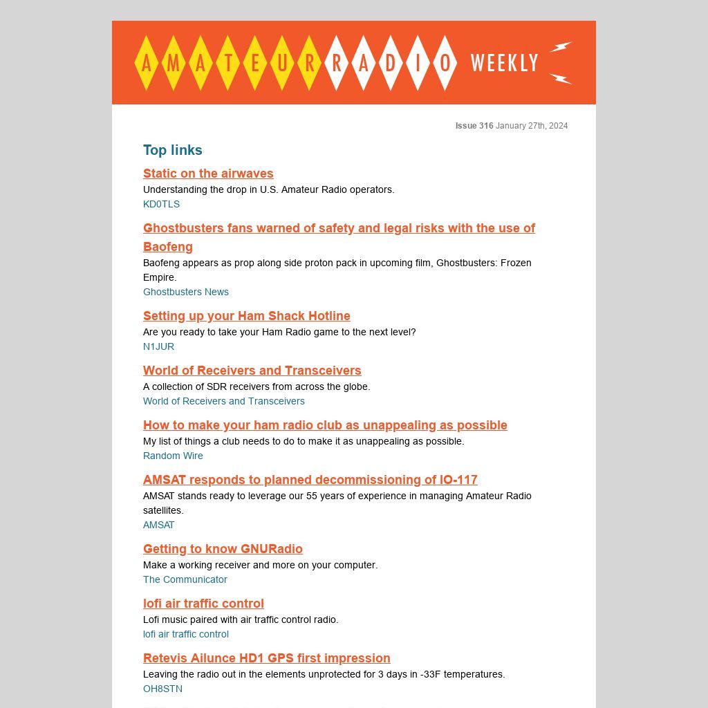 Issue 316 of Amateur Radio Weekly