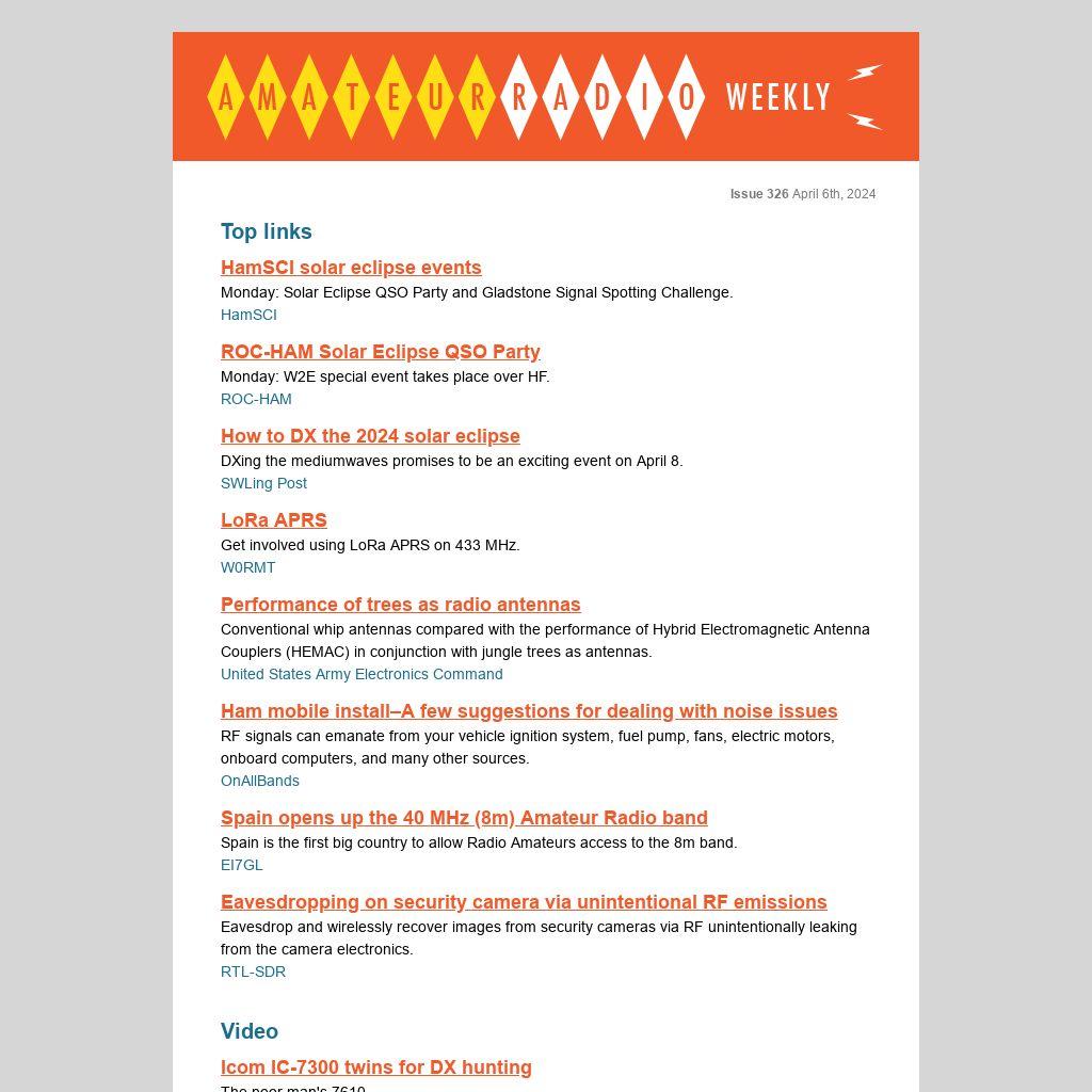 For the first time, I'll be driving up for Hamvention in May. I'm attending as a member of the press and my current thinkinig is to attempt a number of short-form audio interviews with interesting orgs, Hams, vendors, etc., which will be posted both here in the newsletter and on the daily site. I'm also having stickers made up, so hunt me down if you'd like one. Hope to see you there!