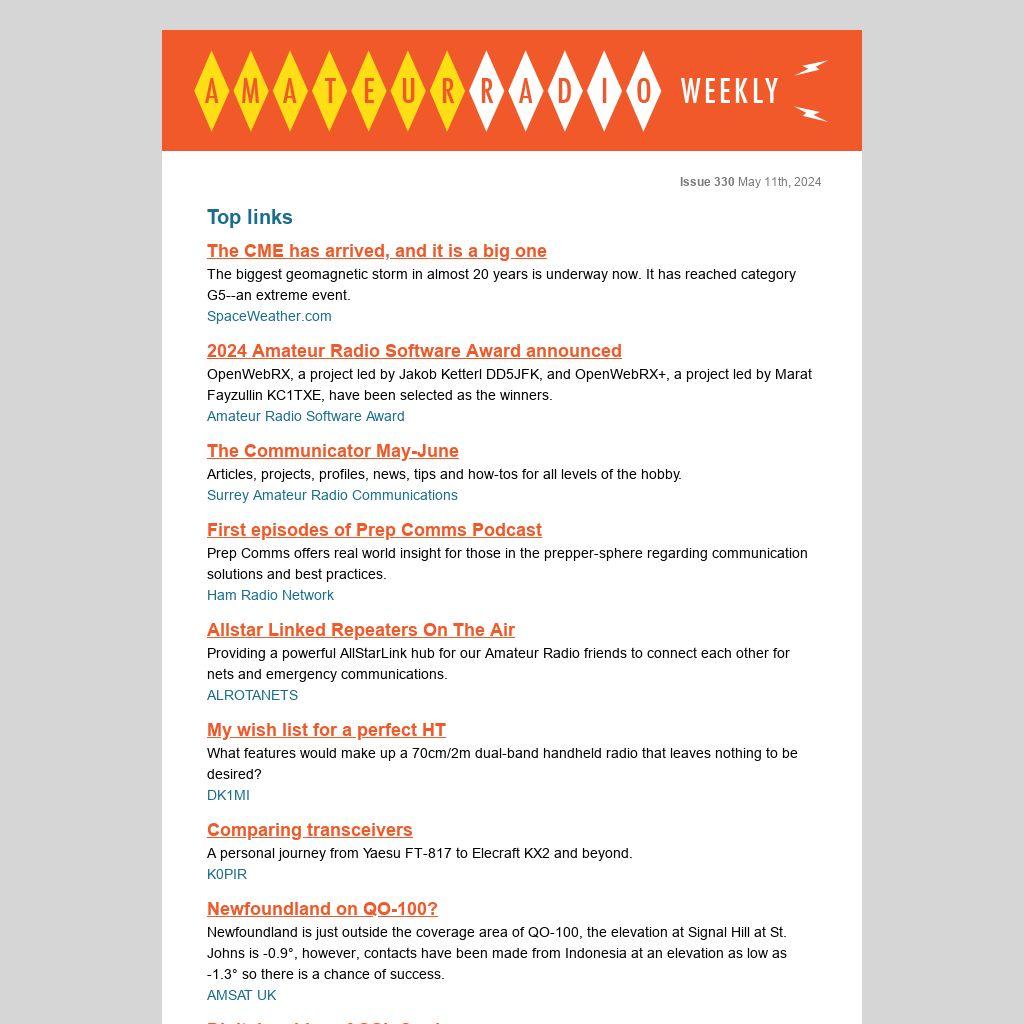 For the first time, I'll be driving up for Hamvention in May. I'm attending as a member of the press and my current thinkinig is to attempt a number of short-form audio interviews with interesting orgs, Hams, vendors, etc., which will be posted both here in the newsletter and on the daily site. I'm also having stickers made up, so hunt me down if you'd like one. Hope to see you there!