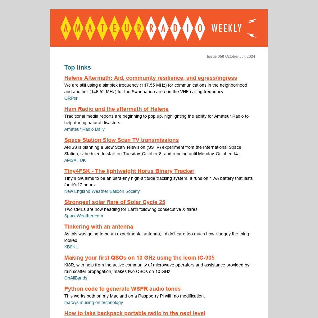 Ham Radio and the aftermath of Helene Traditional media reports are beginning to pop up, highlighting the ability for Amateur Radio to help during natural disasters. Amateur Radio Daily