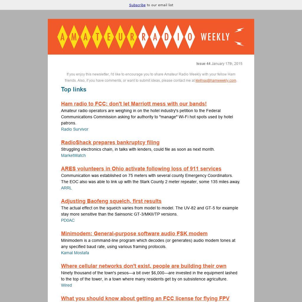 If you enjoy this newsletter, I'd like to encourage you to share Amateur Radio Weekly with your fellow Ham friends. Also, if you have comments, or want to submit ideas, please contact me at kk4hsx@hamweekly.com.
