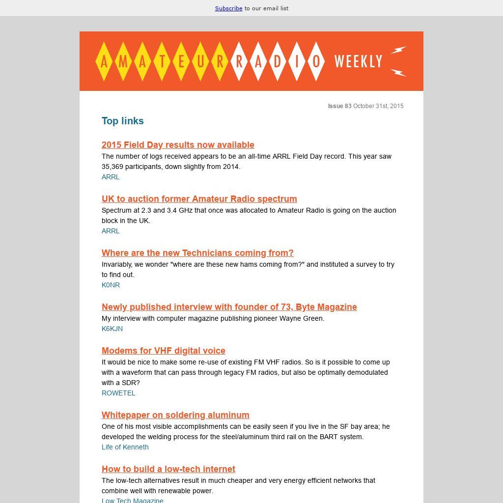 The number of logs received appears to be an all-time ARRL Field Day record. This year saw 35,369 participants, down slightly from 2014. ARRL